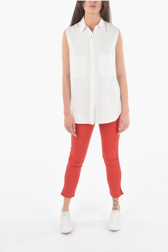 Cotton Sleeveless Maxi Shirt with Double Breast Pockets