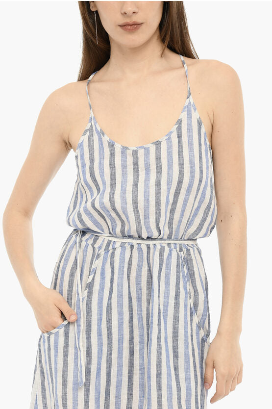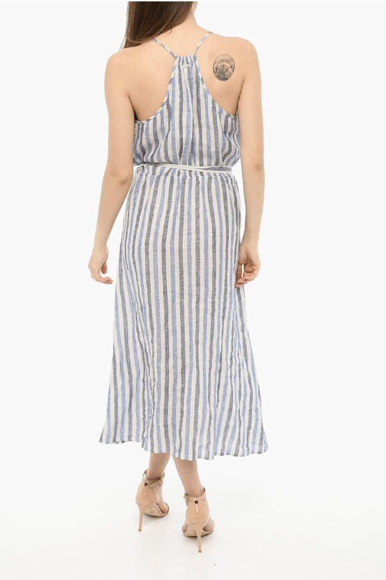 オーニング ストライプ リネン マキシ ドレス ウィズ ベルト