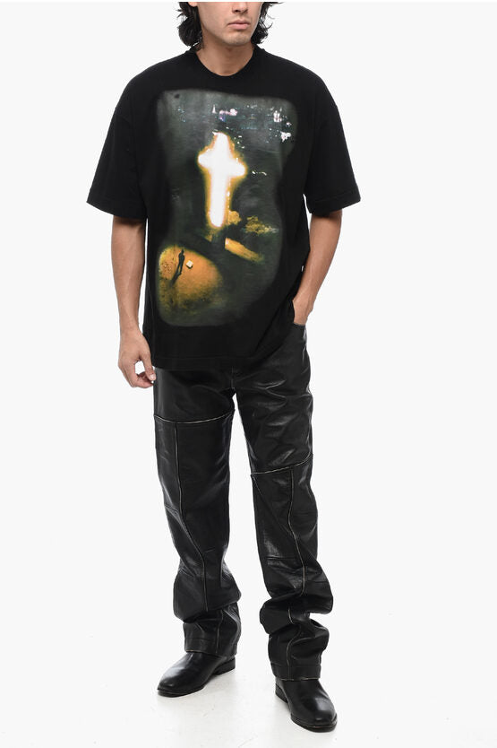 Cotton Crew-neck T-shirt with Maxi Print on the Front