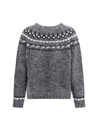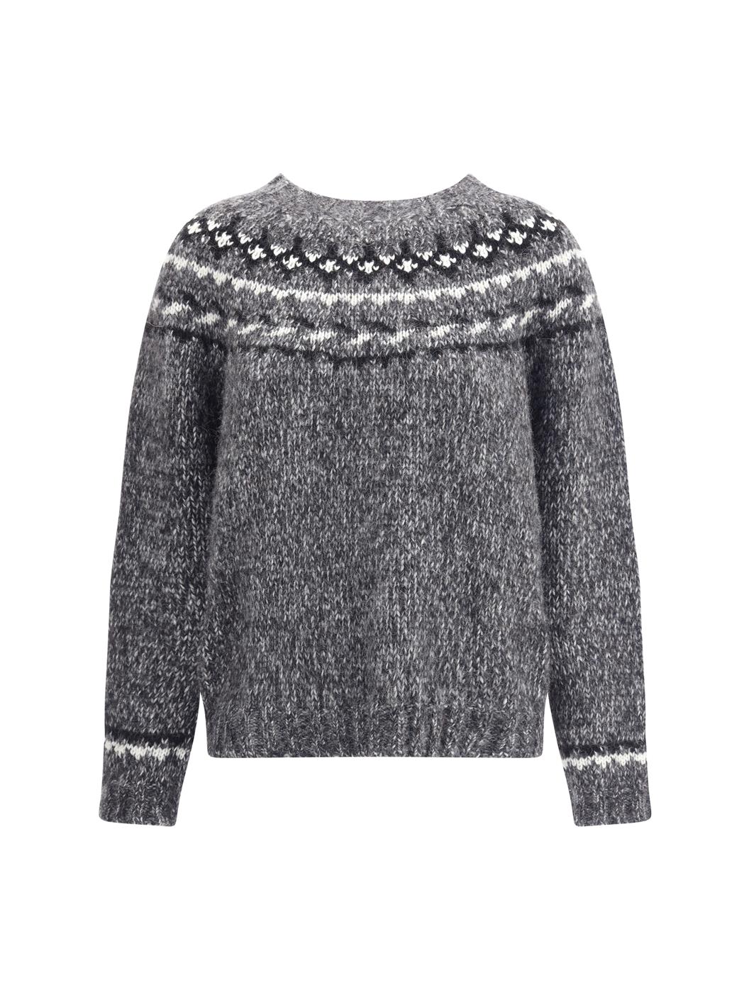 P.A.R.O.S.H.のアルパカ・セーターは、フロントの洗練された幾何学模様が特徴。リブ編みの裾と袖口、ややボートネックがエレガンスと着心地の良さを兼ね備え、汎用性の高い現代的なデザインに仕上がっている。