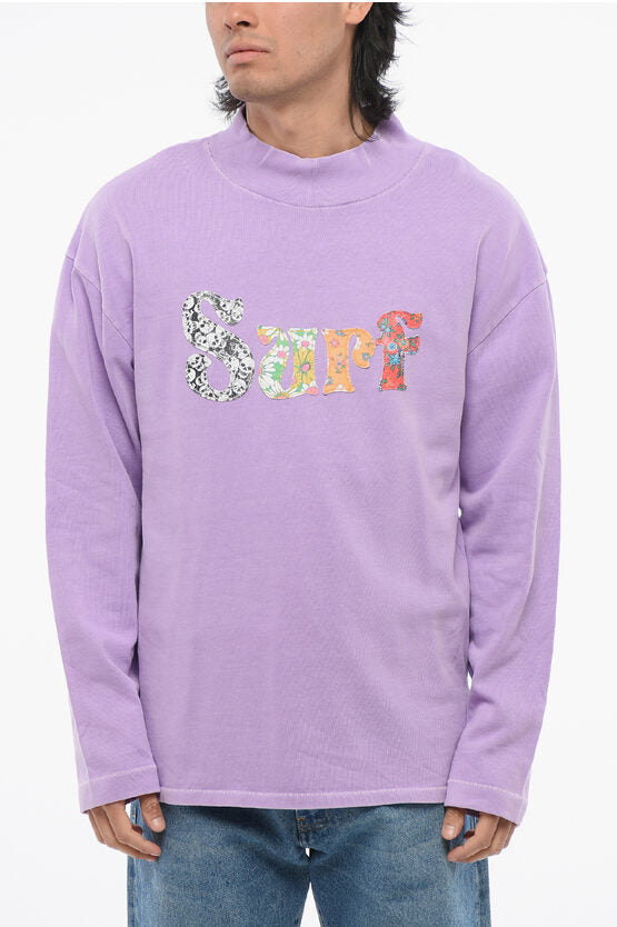 ソリッド カラー モックネック スウェットシャツ ウィズ コントラスティング パッチ