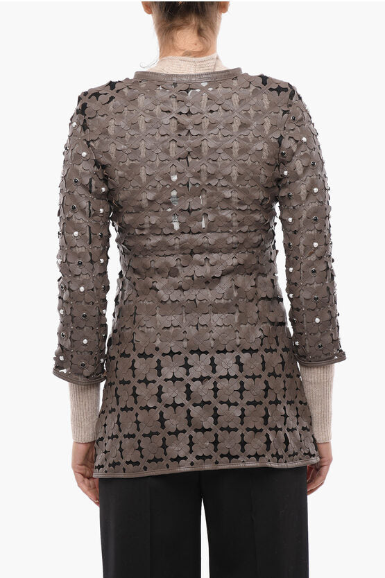 シアー オーバーコート ウィズ エンボス加工 レザー