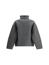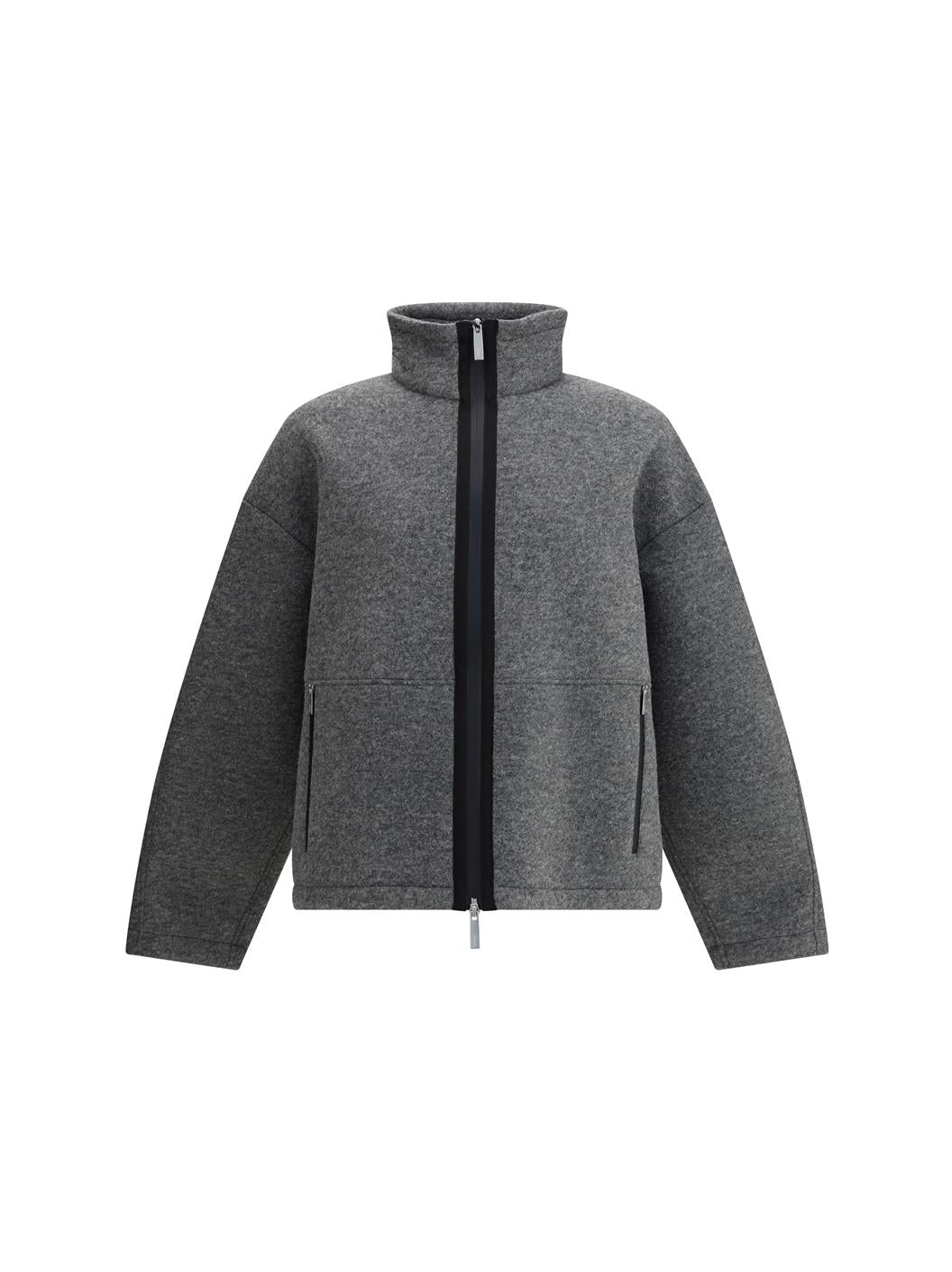 ラミナー社のグレー・ジャケットは、保温性を高める高い襟とフロント・ジッパー開閉が特徴。長袖とウェルトポケットを備え、機能性とミニマルなスタイルを兼ね備えた万能なデイリーアイテム。