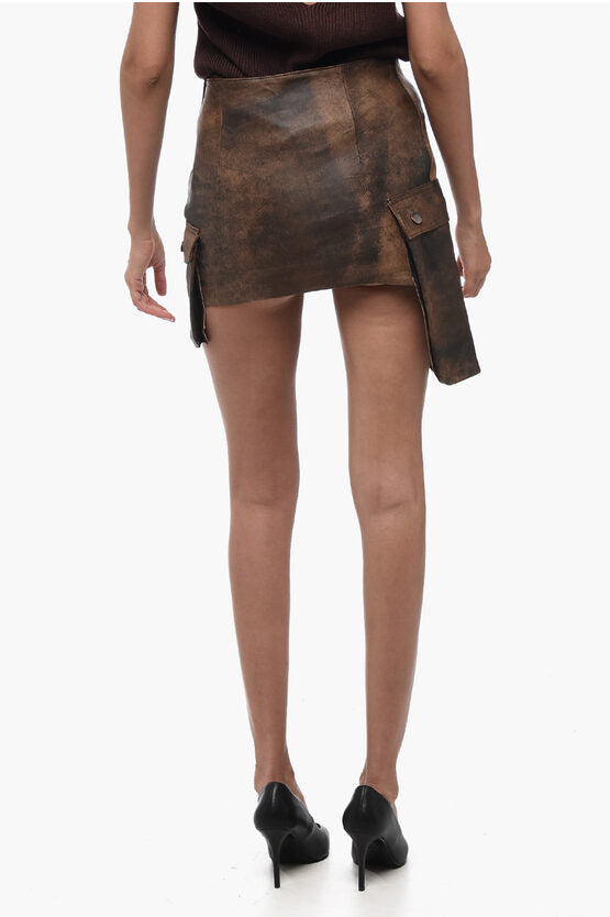 Leather Cargo Miniskirt with Asymmetric Pockets