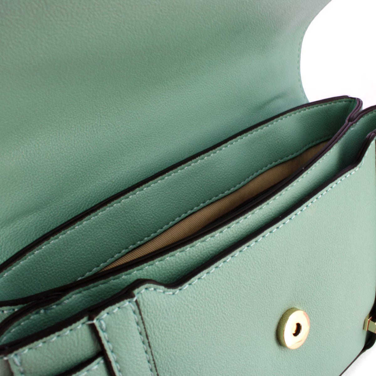 フェイクレザーの多用途でコンパクトなバッグ。ゴールドのメタルのディテールが施されています。スナップ留め。裏地付き。ダストバッグ。