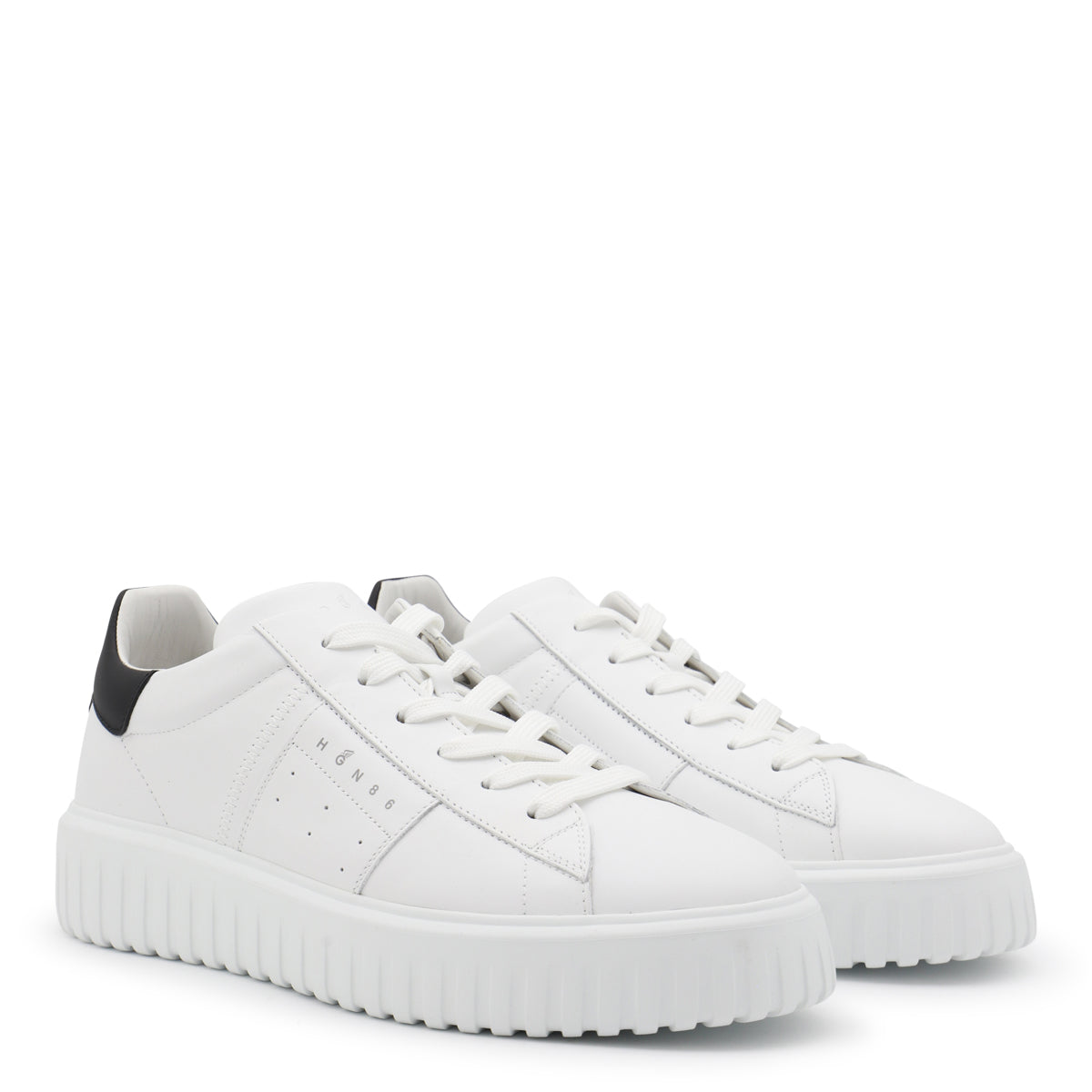 ラウンドトゥ、コットンのシューレース、バックディテール、レザーソール。