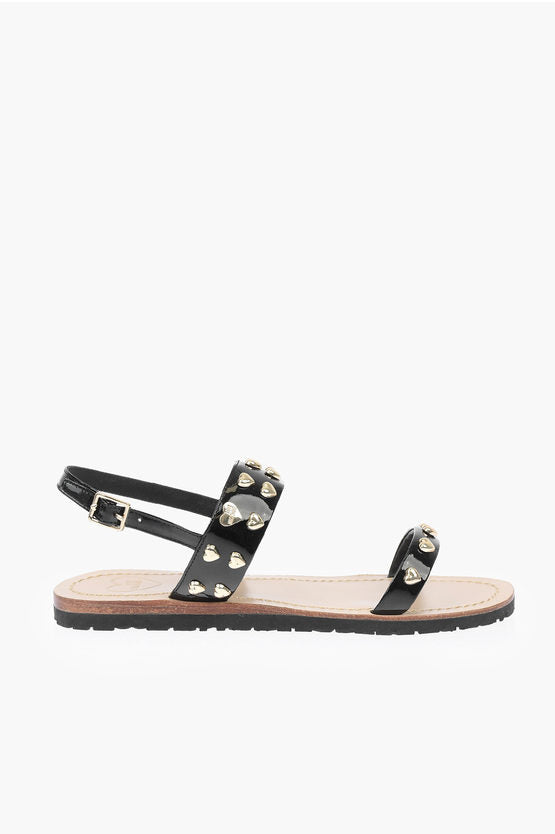 LOVE Patent Leather Flat Sandals with Heart Studs