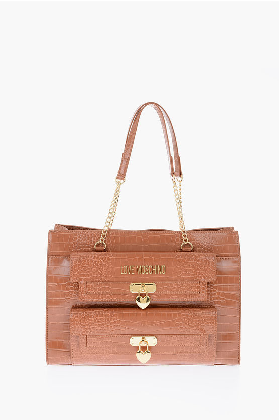 LOVE Crocodile Effect Faux Leather Tote Bag