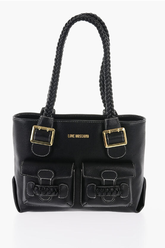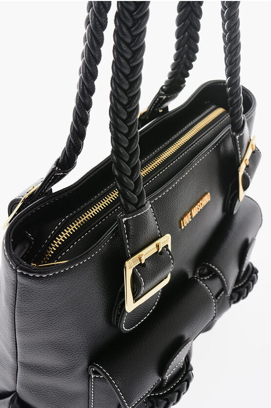 LOVE Faux Leather Shoulder Bag with Braided Handle