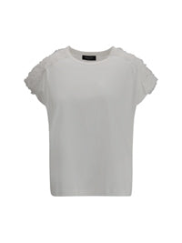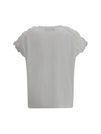 Fabiana Filippi(ファビアナ フィリッピ)のTシャツは、クラシックなスタイルをエレガンスと軽快さで再構築。クルーネックの袖に繊細なチュールのアップリケをあしらい、フェミニンで洗練されたエッセンシャルなデザインに仕上げている。