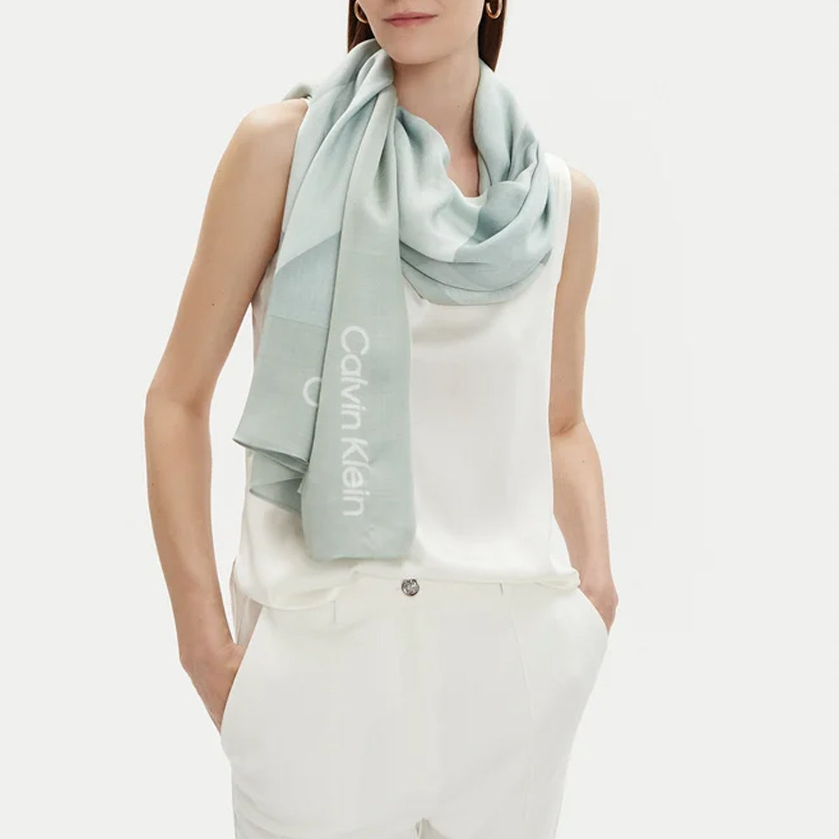 エクリュプリントキルトスカーフ。エレガントなアクセサリー。