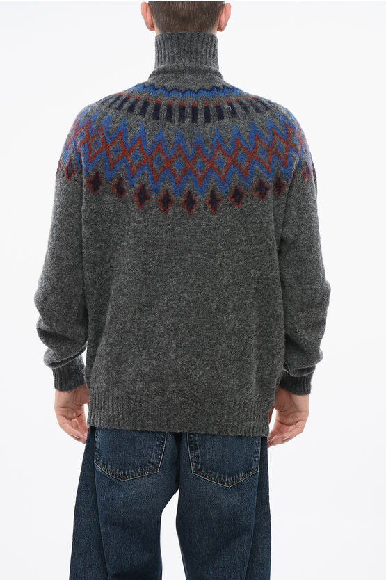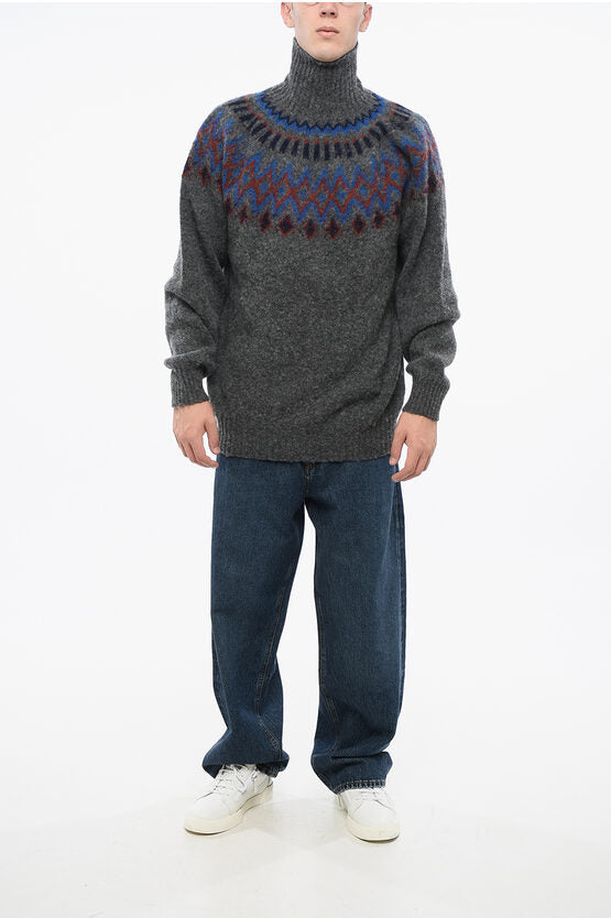 Patterned Pure Wool OXFORD Turtleneck Sweater