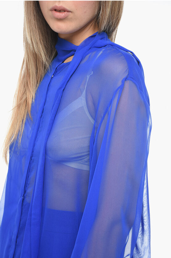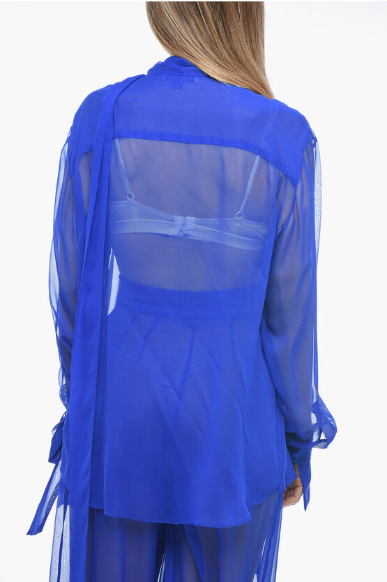 Silk Chiffon Tie Neck Shirt with Knotted Cuffs