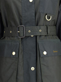 BarbourのMildaワックスド・トレンチコートは、アイコニックなソルウェイ柄からインスピレーションを受け、現代風にアレンジ。カラーブロック柄のワックス・パッチが施され、スナップボタンで開閉し、襟は細めのリブ編み。ウエストのベルトでフィット感を調節でき、実用的でありながらフェミニンでもあります。