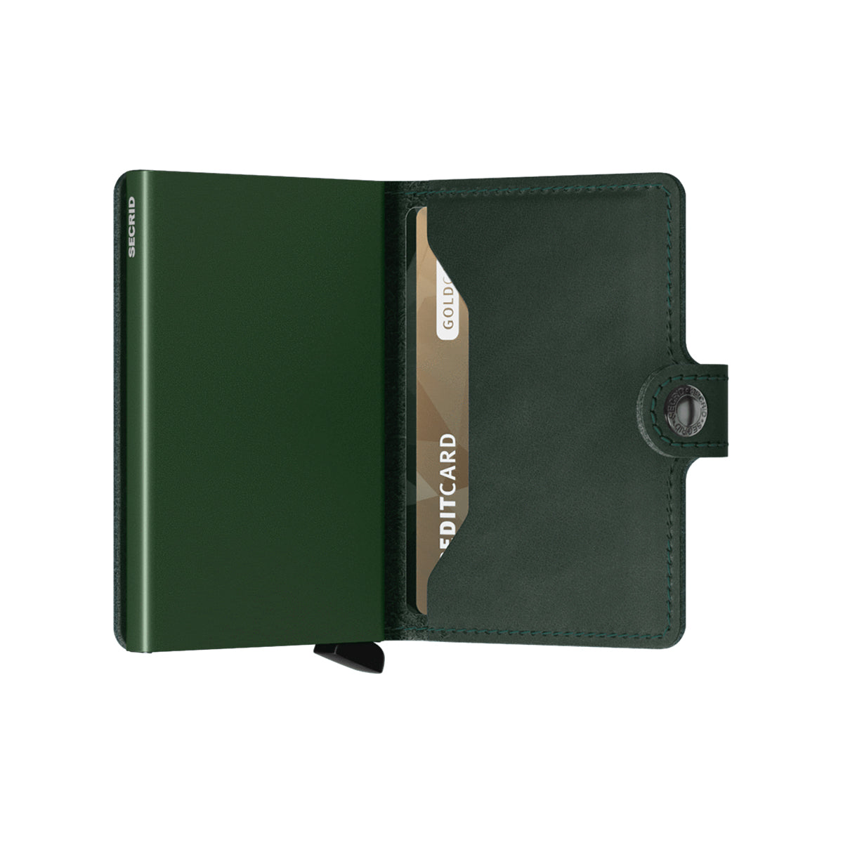 Secrid Miniwallet Original RFID Green. コンパクトで機能的な、多目的に使えるアクセサリーです。スナップボタンで開閉します。