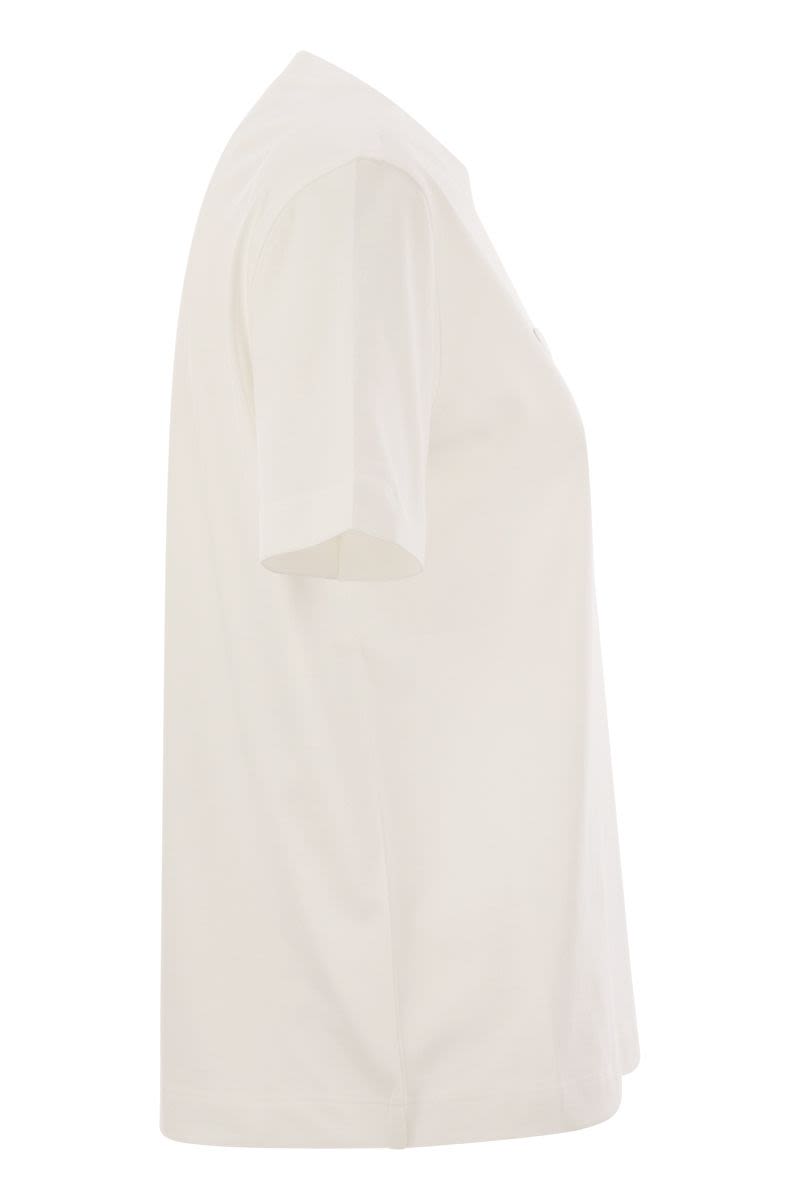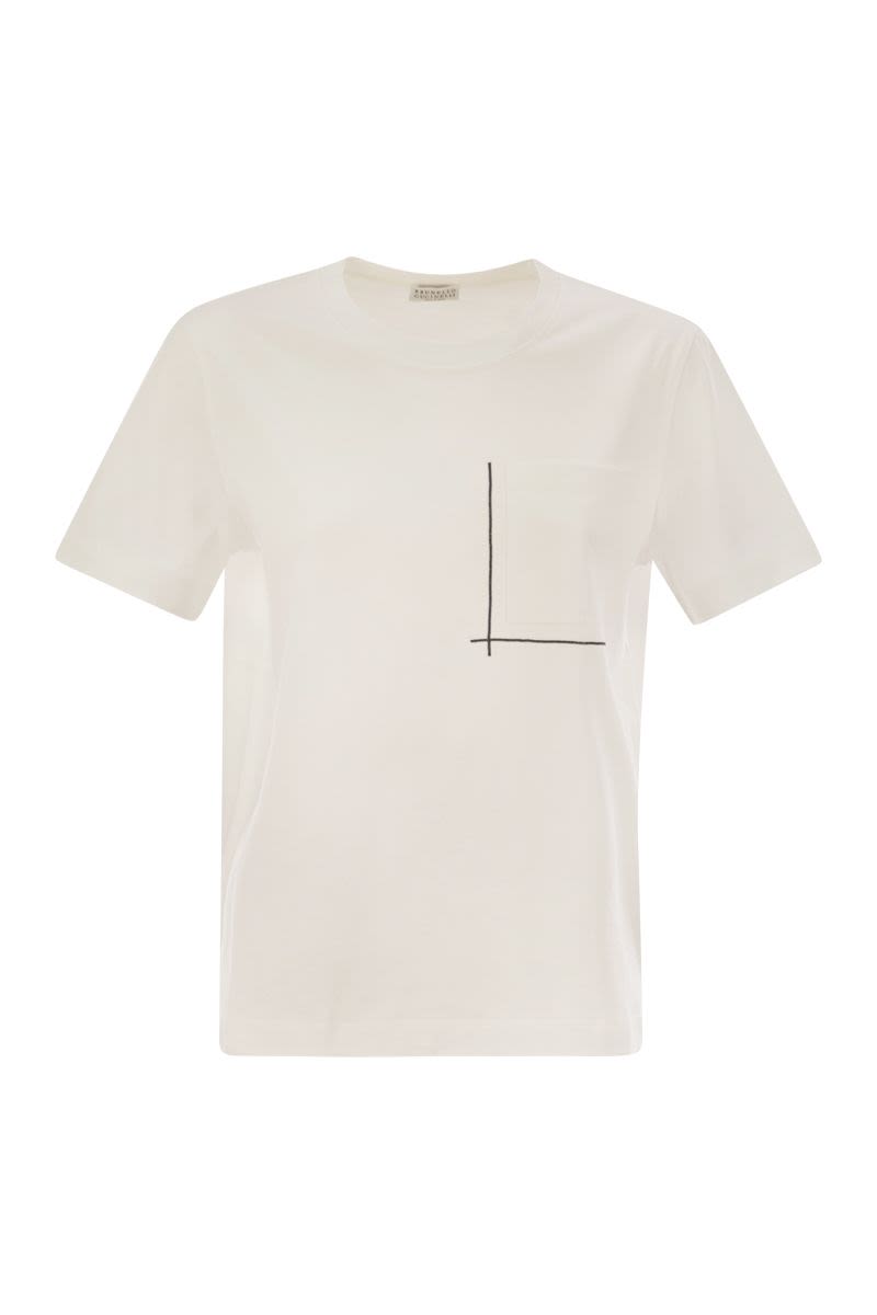 コットン・ジャージーの半袖Tシャツは、多用途に使える必須ベーシックアイテム。クラシックなクルーネックが、快適なレギュラーフィットを引き立てます。アイコニックなジュエル刺繍が胸ポケットを強調し、ブルネロクチネリらしい繊細で光り輝くディテールを添えています。男性のワードローブからインスパイアされたピュアコットンジャージーのスポーティなテイストは、最高の素材研究から生まれました。快適で軽く、着心地も抜群。