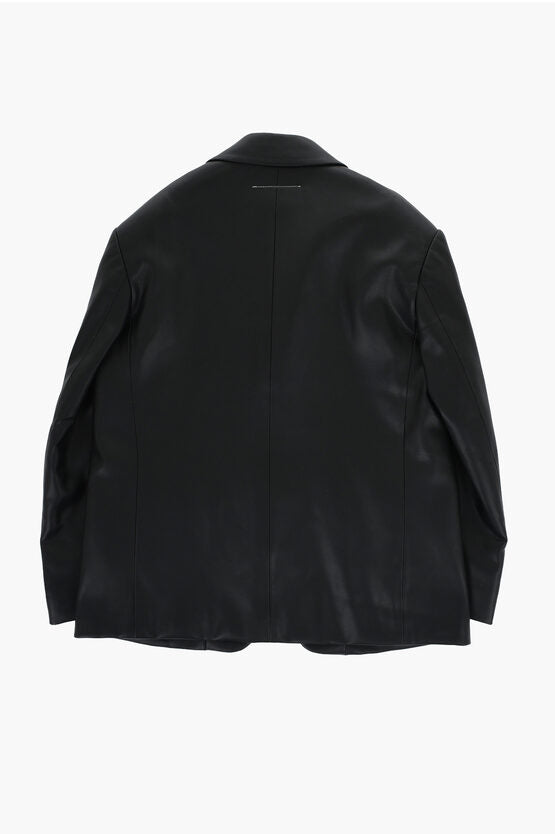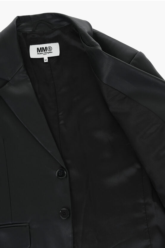 MM6 Faux Leather Blazer with 2-Buttons And Flap Pockets