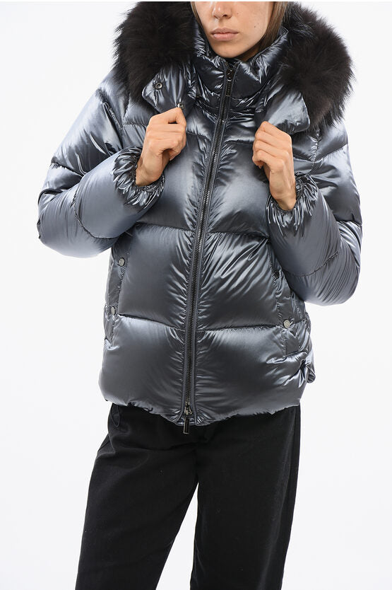 Lamè Nylon MELITA Down Jacket with Fur Hood