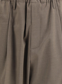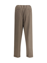マリアーノのウール・エラスティック・パンツは、リラックスしたデザインの中に快適さと個性を兼ね備えている。ウエストはゴム入りで、フロントファスナー開閉とベルトループ付き。裾のバギーカットがコンテンポラリーでカジュアルなタッチのルックを完成させている。