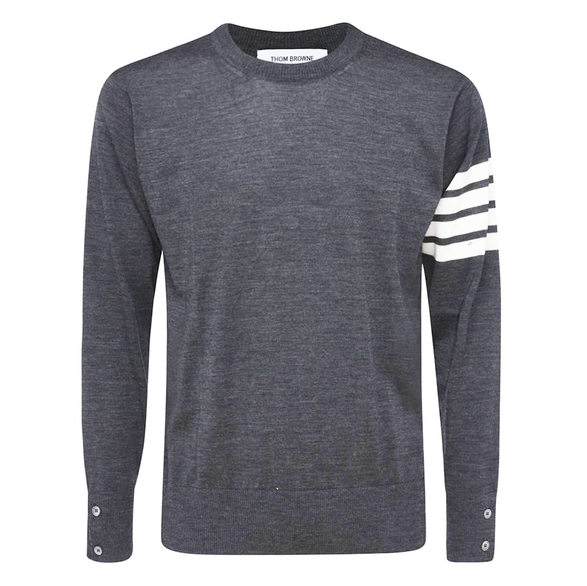 クルーネック、ニット構造、長袖、シグネチャー4バーストライプ、袖口と裾のリブ、RWBストライプが特徴です。