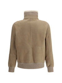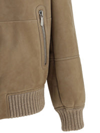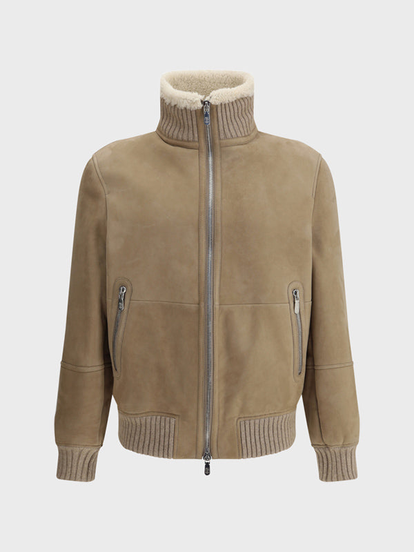 ブルネロ・クチネリのシャーリング・ジャケットは、上質なスエードを贅沢に使用した暖かな一着。高い襟は防寒性を高め、フロントのファスナー開閉は実用的でクリーンな印象を与えます。フロントの2つのジッパー付きウェルトポケットが、スタイルを損なうことなく機能性をプラス。袖口と裾はカシミアのリブ編みで仕上げ、ラグジュアリーで快適な着心地を与えている。エレガントで暖かな冬を過ごすのに最適な一着。
