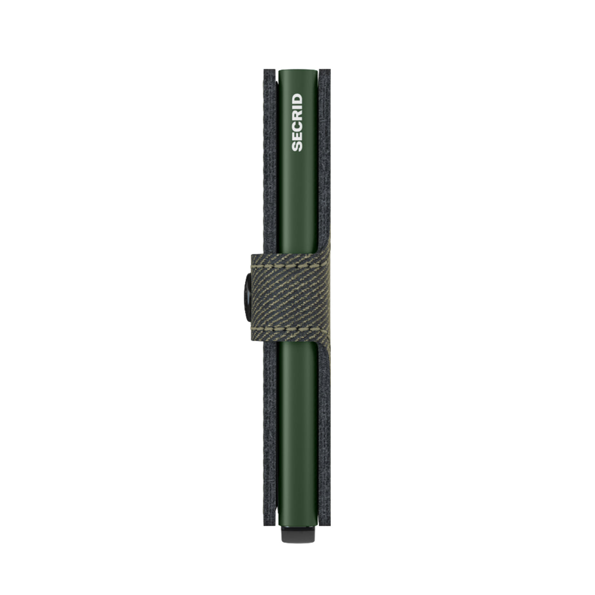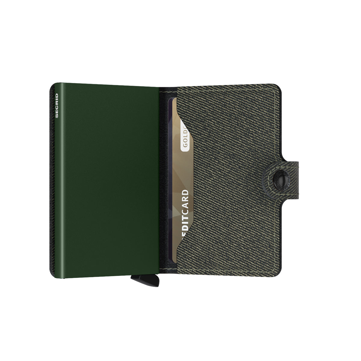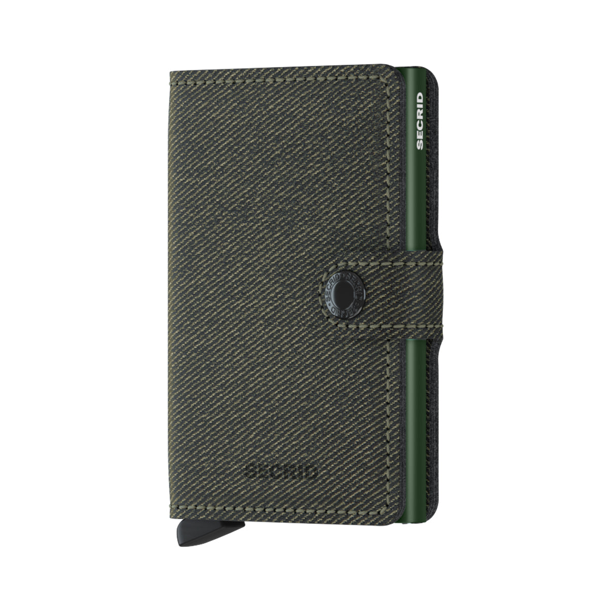 Secrid Miniwallet Twist RFID Green.機能的で多目的な財布。デニム生地。スナップ留め。カードケース付き。