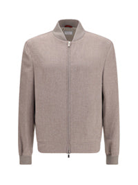 ブルネロクチネリのカシミアジャケットは、便利で快適なダブルスライダーフロントファスナー開閉が特徴。袖口は伸縮性のあるリブ編みで、ぴったりとフィット。モノクロームのパターンがエレガントで多用途な印象を与え、洗練されたモダンなルックに最適です。