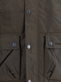 BarbourのModern Beaufort Waterproof Jacketは、英国のアウターウェアのアイコンを現代的に再解釈。調節可能なドローストリング付きフードとコーデュロイの襟が特徴で、フロントジッパーとスナップボタンで開閉する。ボタン付きのフラップ・パッチポケット2つとウェルトポケット2つで、機能性とクラシックなスタイルの完璧なバランスを実現。パッド入りモデル。