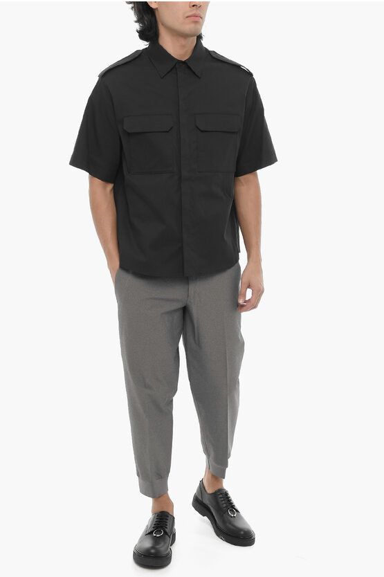 Short Sleeved Loose Fit Shirt with Double Breast Pocket