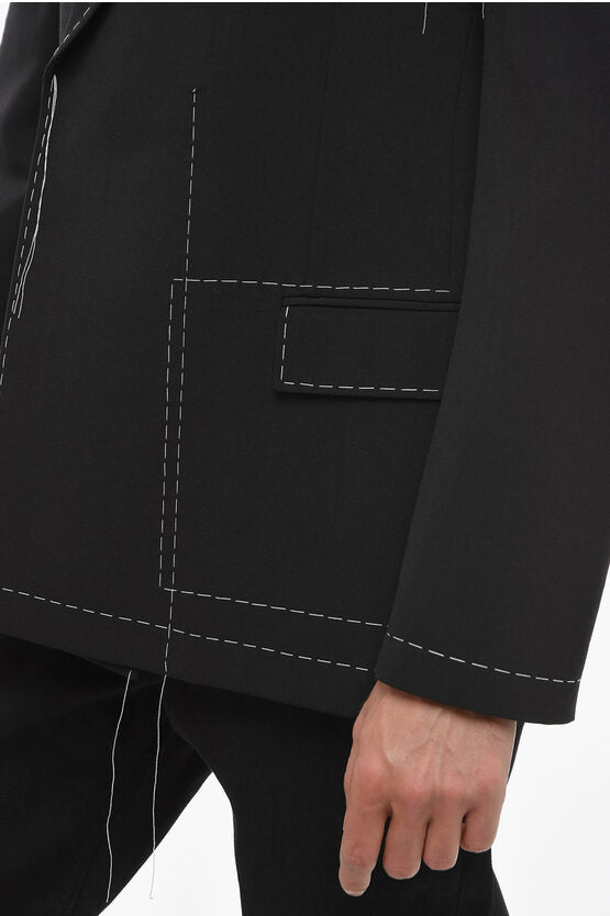 Double-breasted Wool Blend Blazer with Visible Stitchings
