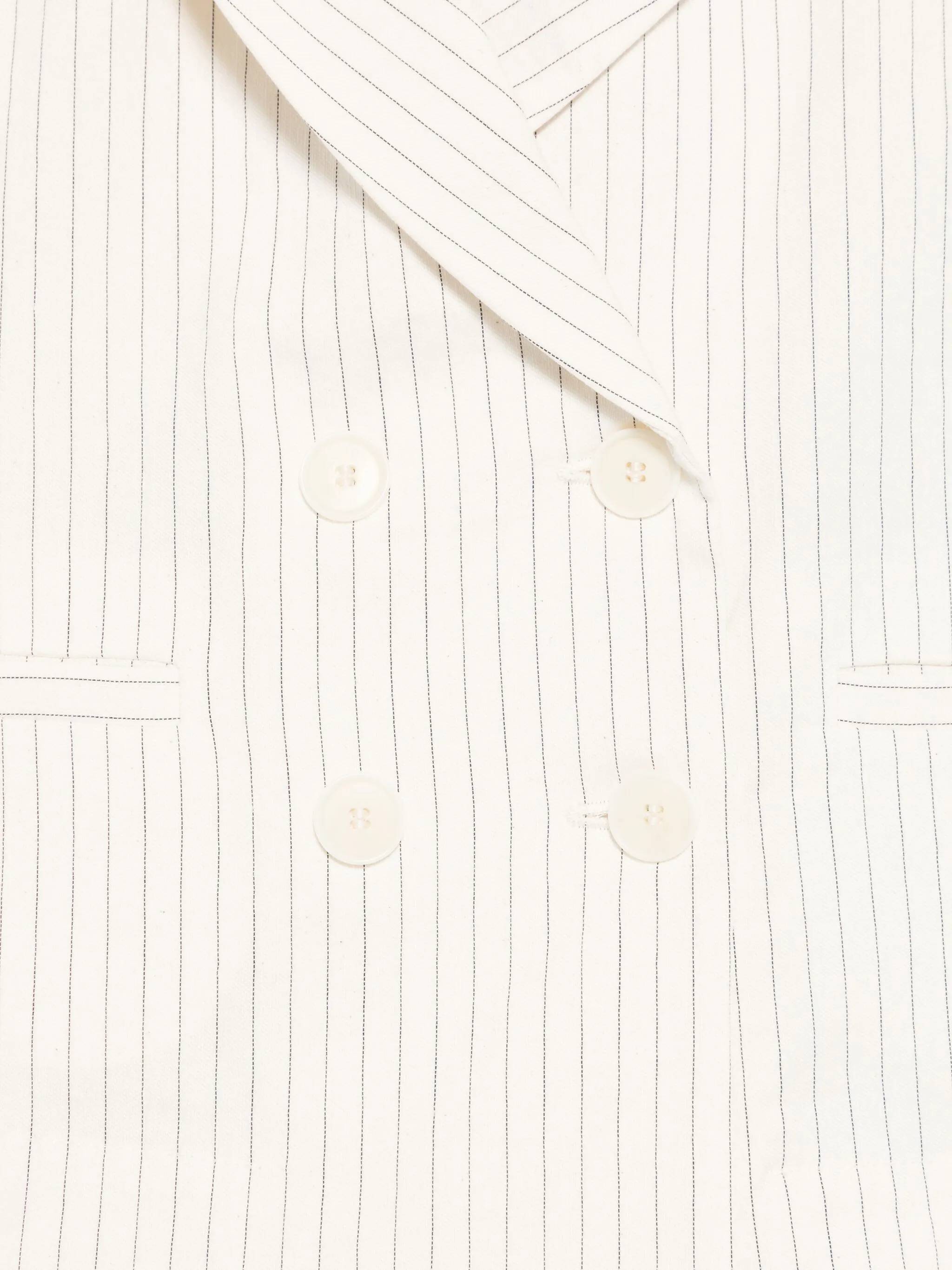 ホワイト ダブルブレスト ボタンファスナー フロントにウェルトポケット2つ ボタン付きカフス アメリカンリアベント