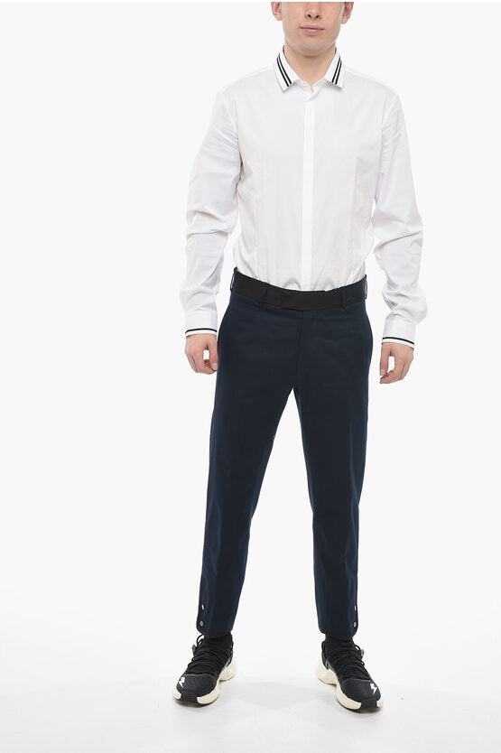 Slim Fit TOM Pants with Contrasting Edges and Ankle Buttons