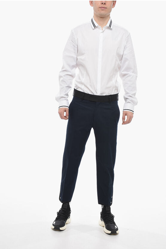 Slim Fit TOM Pants with Contrasting Edges and Ankle Buttons