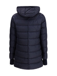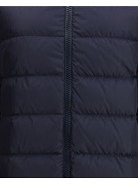 機能性と現代的なスタイルを兼ね備えたヘルノ・フード付きダウンジャケット(ダークブルー)。2ウェイ・フロントジッパー、ジッパー付きサイドポケット、取り外し可能なドローストリング付きフードが特徴で、実用性と快適性を提供。袖口はリブ編みで仕上げ、襟裏にはメタルロゴをあしらいました。