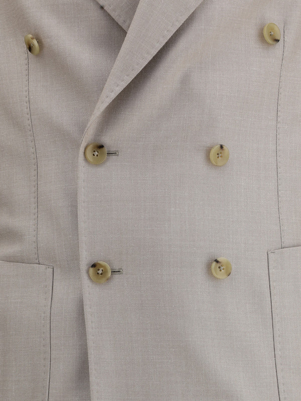 Gi Capriのバージン・ウール・スーツはブレザー・ジャケットとパンツから成る。ダブルブレストのジャケットはボタンで開閉し、フロントにはウェルトパッチポケット、背中にはスリットポケットと2本のスリットが入り、快適な着心地。ピークドラペルがエレガンスを添えている。ジッパーとボタンで開閉するパンツは、スラッシュ・ポケットとウェルト・ポケットを背面に備え、ベルトループも付いている。フォーマルで洗練されたシーンに最適な、洗練された万能スーツ。