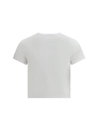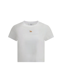 Maison KitsunEのフォックス・ベイビー・クロップTシャツは、モダンなカッティングのエッセンシャルな一着。リブ編みのクルーネックで、ブランドの象徴であるキツネが刺繍されたワッペンが特徴的。カジュアルでコンテンポラリーなルックにぴったり。