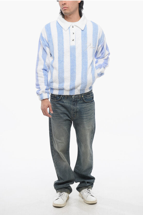 Awning Striped Terry Cotton 3-Buttons Sweatshirt