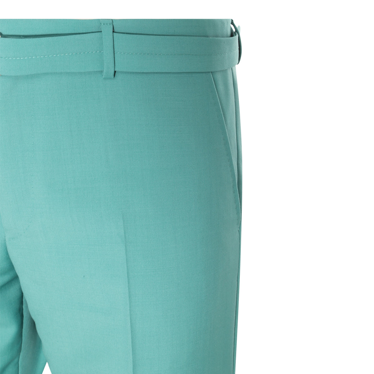 サイドポケット、ローウエスト、フックディテールのファスナー開閉、ベルトループが特徴です。