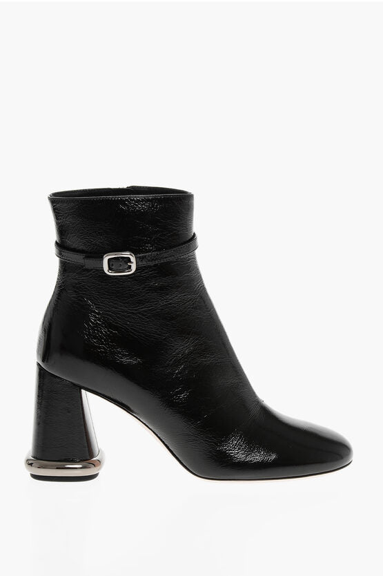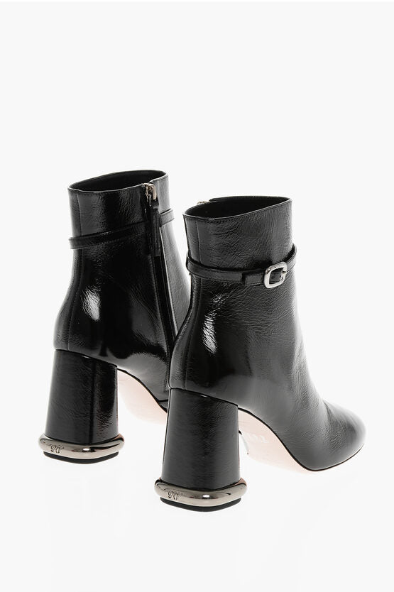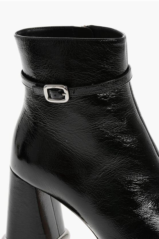 テクスチャード パテント レザー ブーティー ウィズ ステートメント ヒール