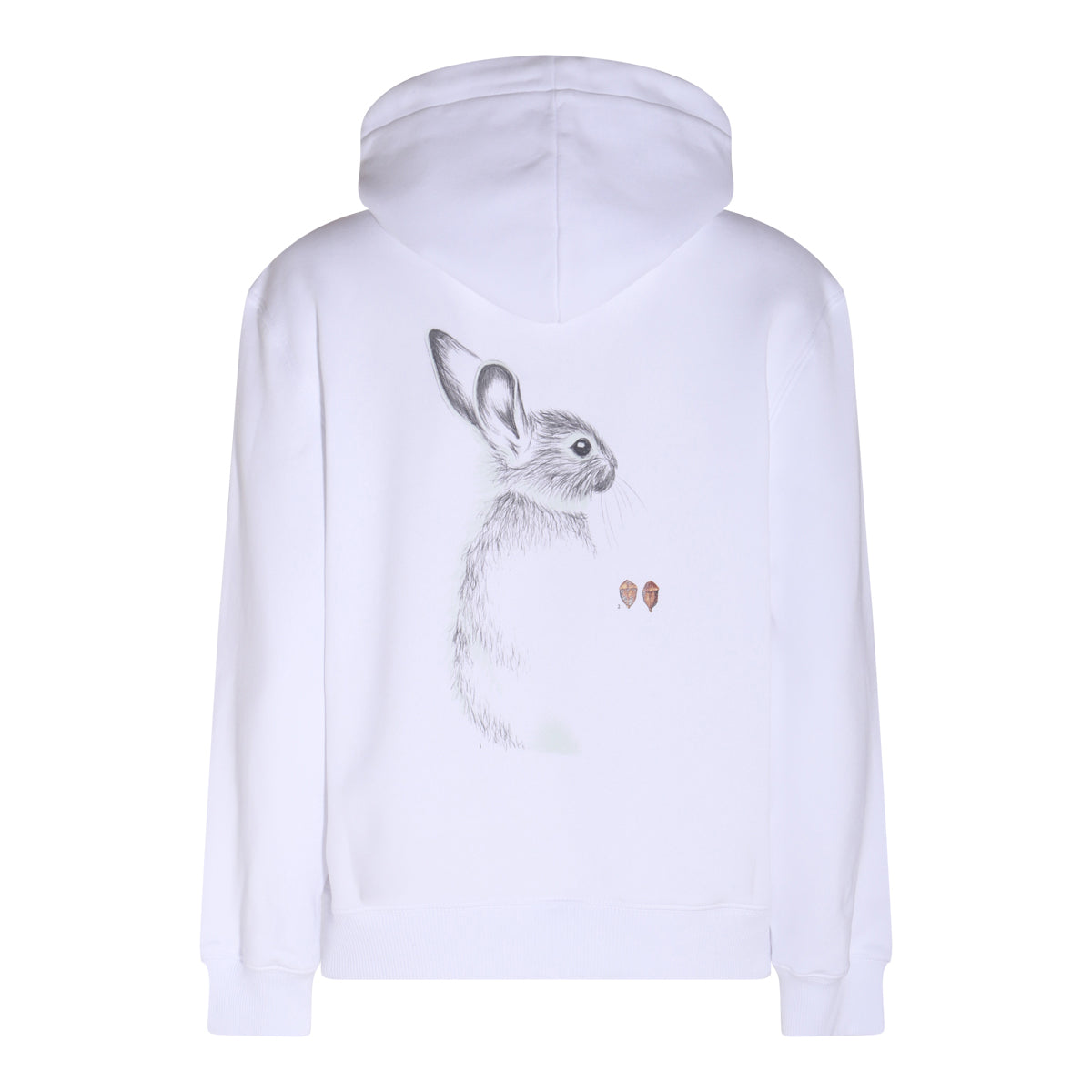 長袖、フーディー、カンガルーポケット、リブ編みエッジ、バックにラビットプリントがあしらわれています。
