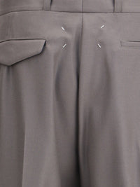 マルジェラ・グリーンのプリーツ入りウールパンツは、エレガンスと機能性を兼ね備えたコンテンポラリーな一本。プリーツデザインはシルエットを強調し、ウエストのループはベルトでルックを完成させます。サイドポケットがスタイルを損なうことなく実用性を加え、フォーマルなシーンや洗練された装いに最適なモデルです。