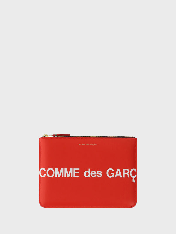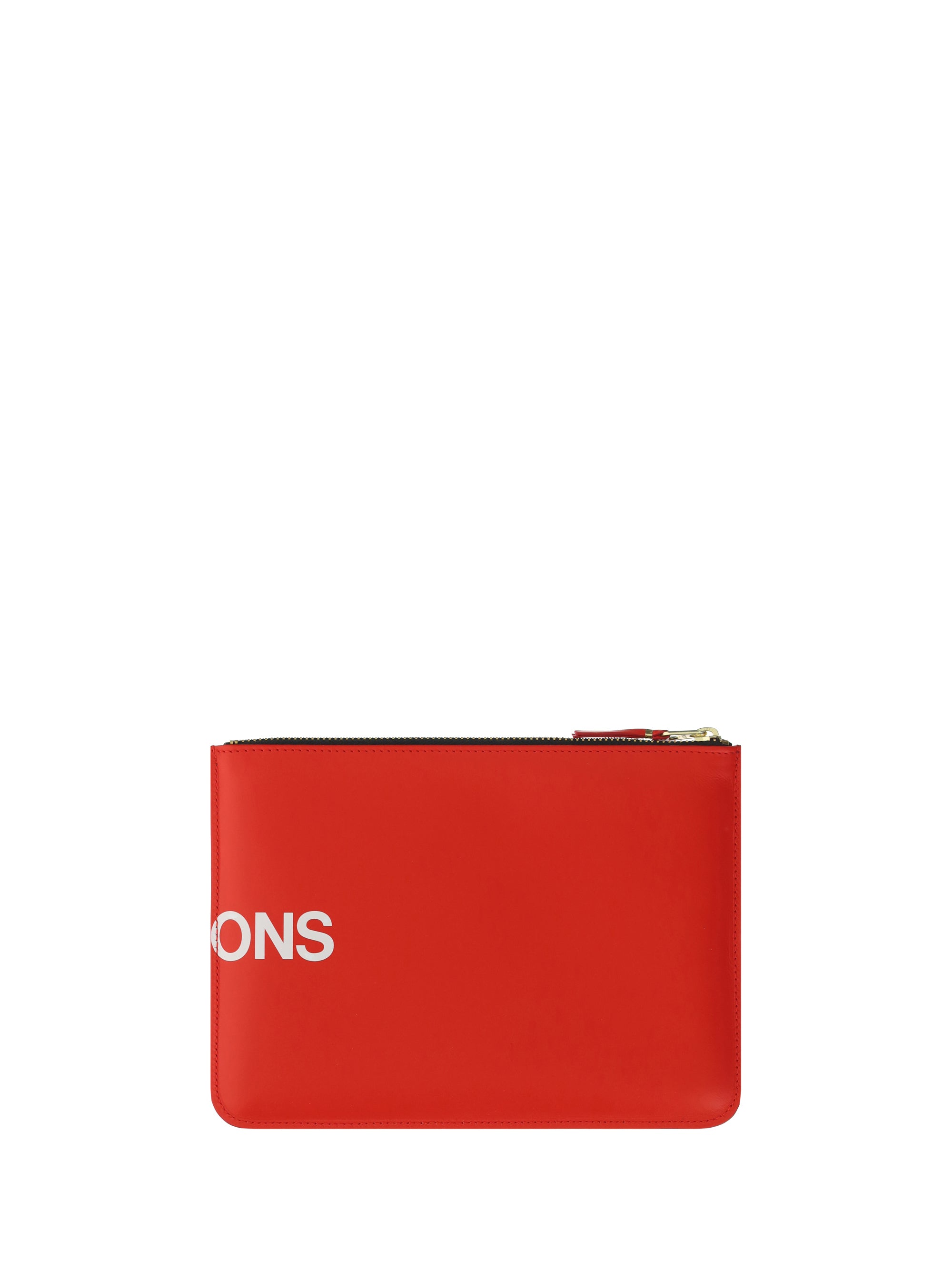 カーフスキン コインケース by Comme des GarCons - フロントとバックにコントラストカラーのプリントロゴ - トップファスナー開閉式 - 内側は1室構造 - フロントにブランドロゴのプレススタンプ入り