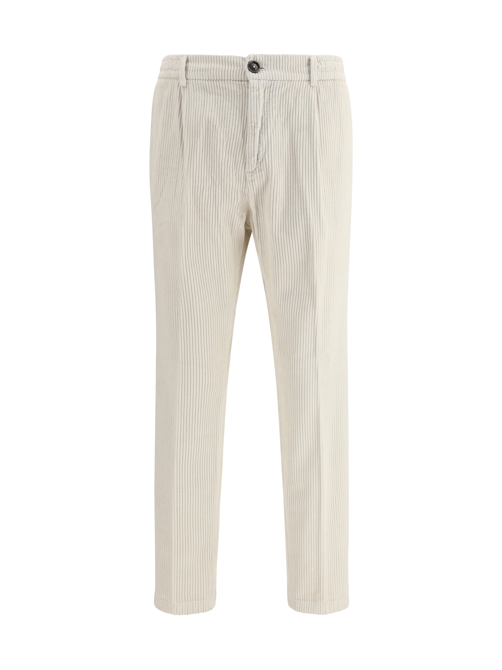 クルナのコーデュロイ・パンツは、カジュアルなエレガンスと快適さを兼ね備えている。フロントはジッパーとボタンで開閉し、ウエストにはベルトループが付いています。涼しい季節に最適な、洗練された万能ルックです。