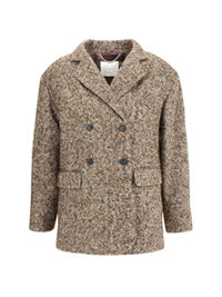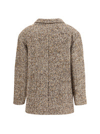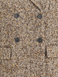 トゥルー・ロイヤルのヴィットリア・ジャケット。ツイード素材を使用し、ボタン留めのダブルブレスト仕立て。フロント下部の2つのポケットが特徴で、機能的なディテールと洗練されたエレガンスを兼ね備えています。時代を超越した魅力を、ブランドの現代的なタッチで再解釈した一着です。