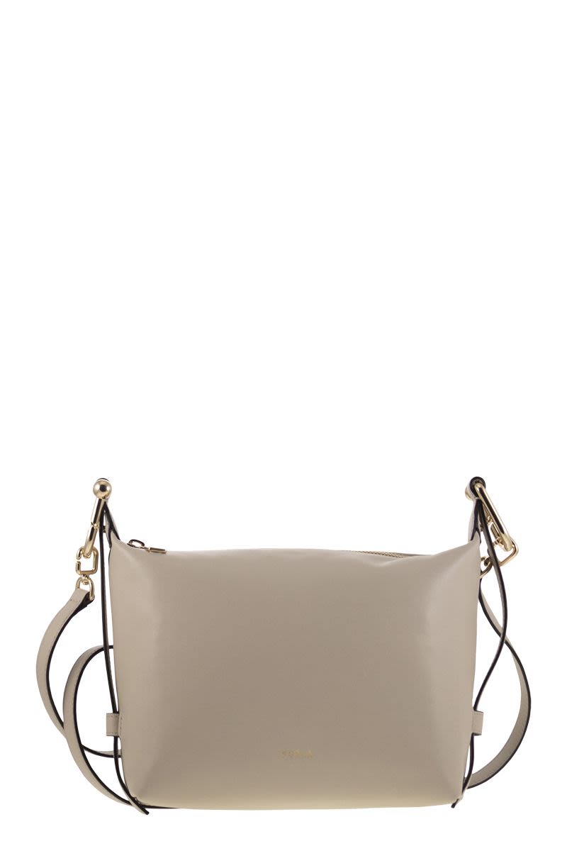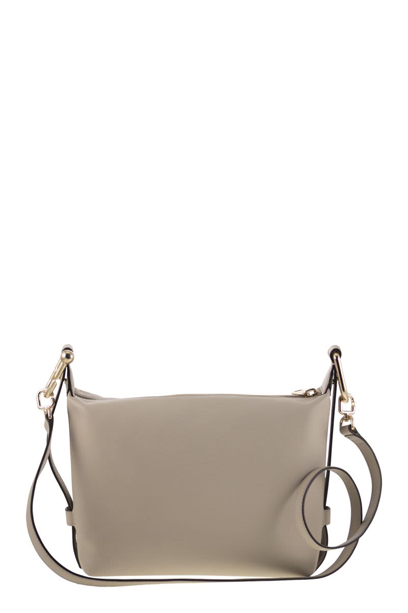 フルラ ヌヴォラ ハンドバッグのミニチュアサイズ。ソフトレザーにグレネード加工を施し、ナチュラルなタッチに仕上げました。丸みを帯びたラインは、アイコニックなアルコ・フルラのロゴとブランドオリジナルの丸いエレメントを組み合わせた2つのアルコスフェラ金具が絡み合うトップハンドルに抱かれています。トップハンドルバッグとしても最適ですが、お揃いのショルダーストラップを付ければショルダーバッグとしてもお使いいただけます。