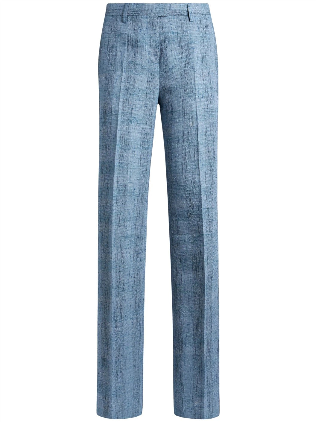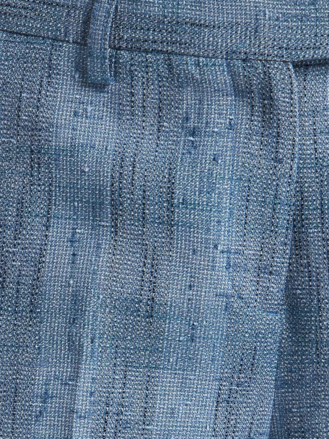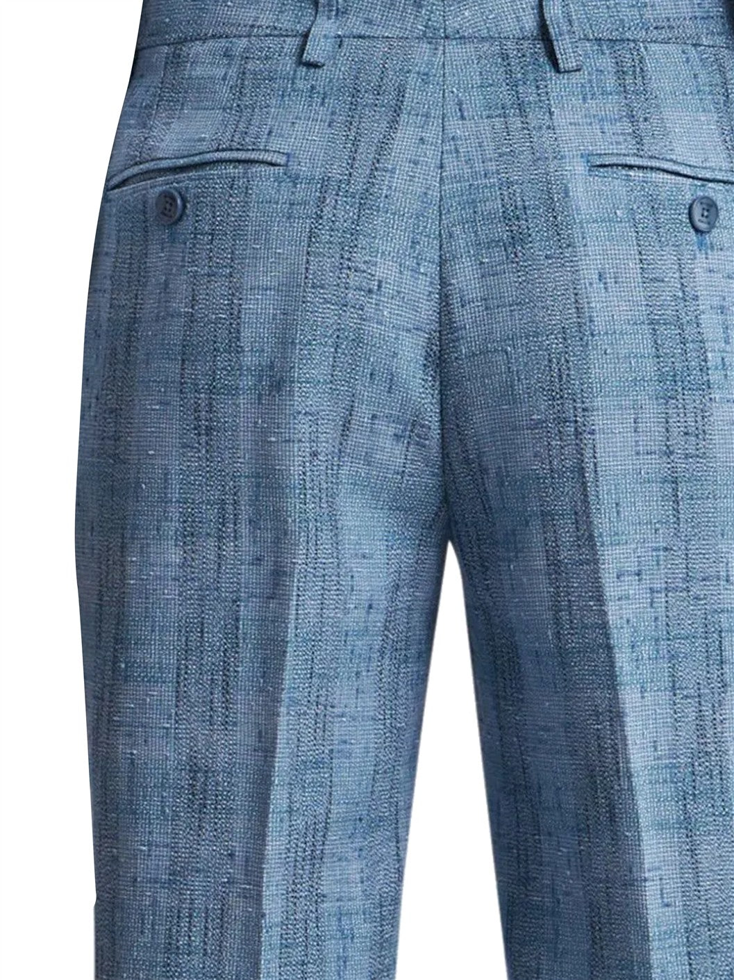ブルー コンシールド フロントファスナー ベルトループ サイドにインセットポケット2つ 後ろにボタン留めポケット2つ