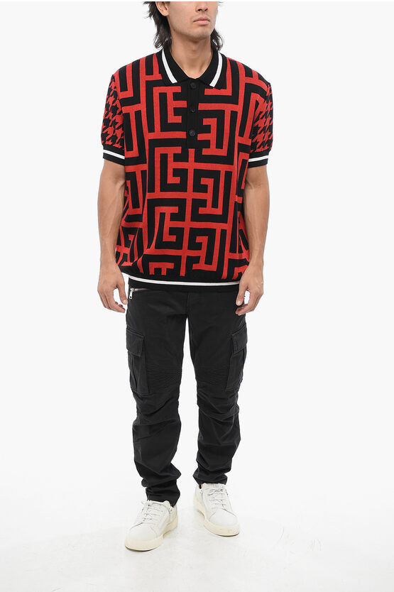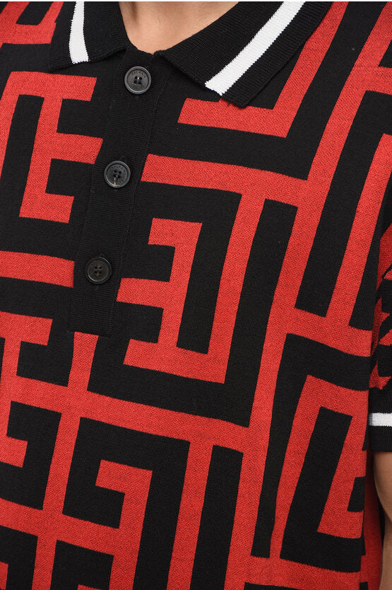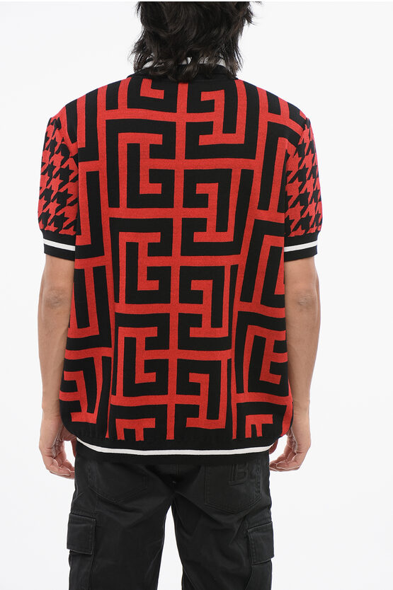 Short-Sleeved Sweater with Polo Neck and All-Over Monogram