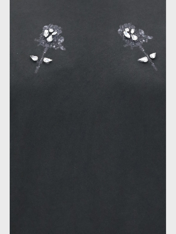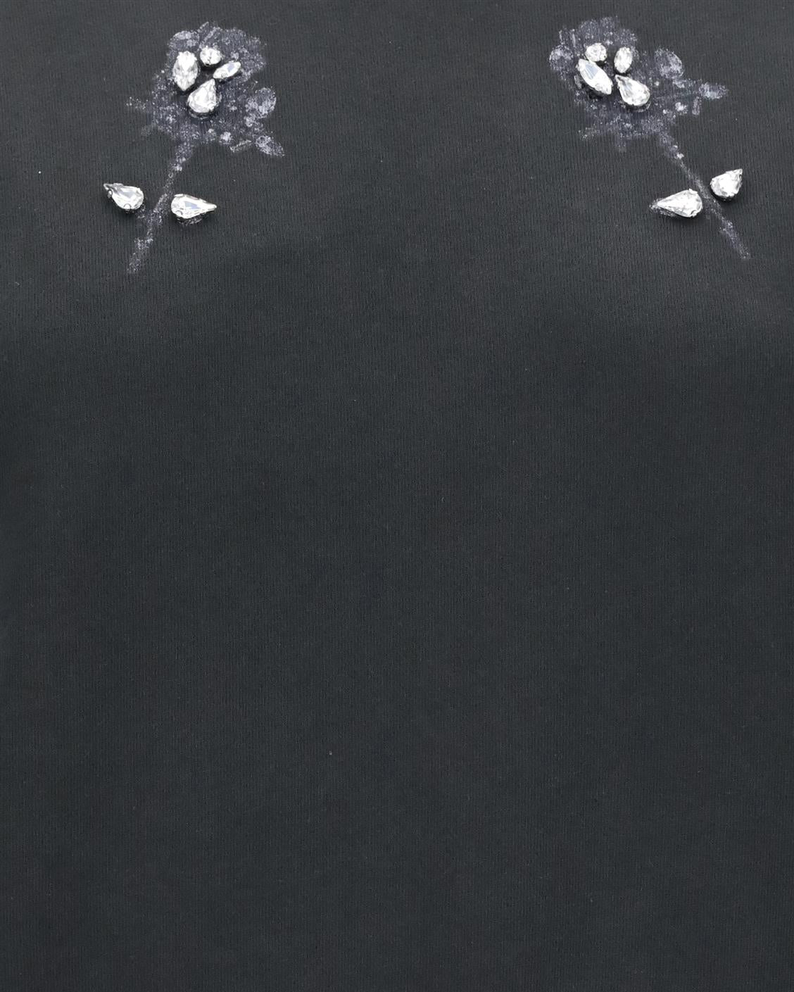 ピンコのラインストーンスウェットは、快適さと女性らしさを明るいタッチで融合させた一着。クラシックなリブ編みのクルーネックで、裾と袖口はゴム入り。フロントには花の形をした繊細なラインストーンがあしらわれ、デザインに光と個性を添えています。シンプルなルックに華やかさをプラスするのに最適。