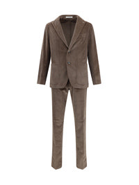タリアトーレのコーデュロイ・スーツは、レトロなスタイルと現代的な洗練が融合している。ブレザーはノッチドラペル、フロントボタンクロージャー、2つのフロントパッチポケット、胸ウェルトポケット、ラペルにはブランドのシグネチャーピンがあしらわれている。ストレートレッグのパンツはジッパーとボタンで開閉し、両サイドにウェルトポケット、バックポケットが2つ、ベルトループ付き。エフォートレスでエレガントなアンサンブル。