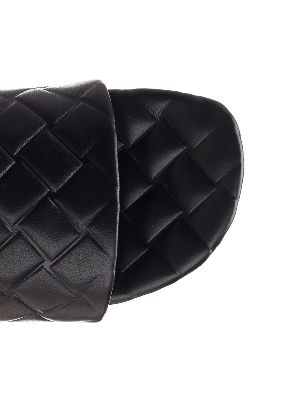 Amy flat sandals in black nappa leather with Intreccio effect from Bottega Veneta.